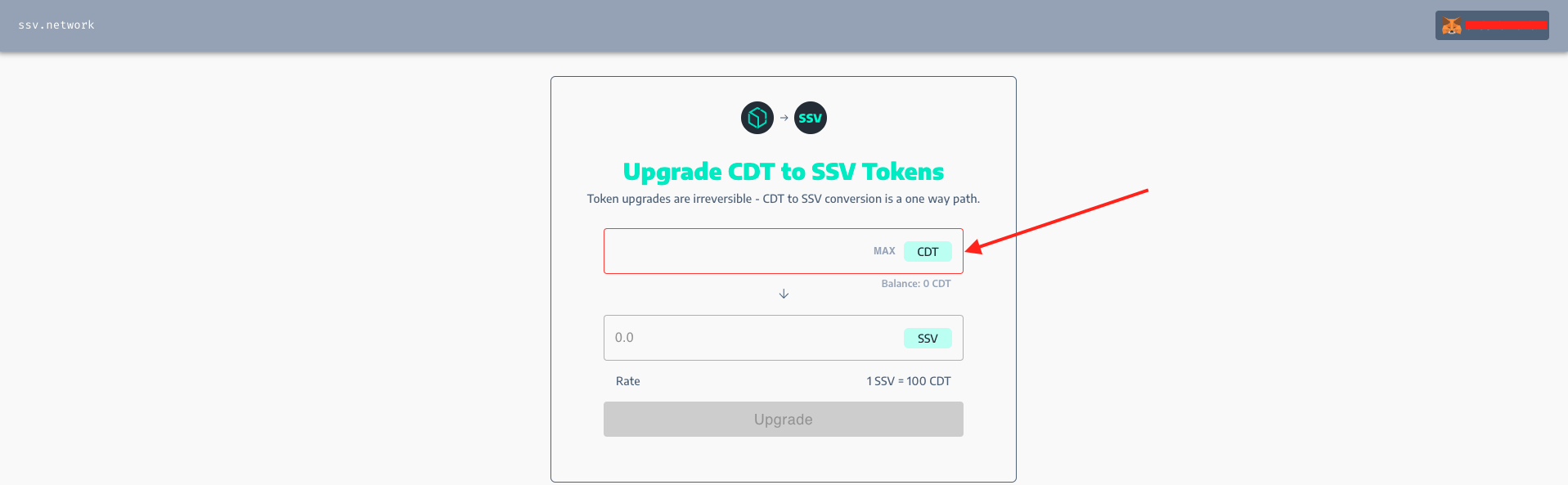 5. Input the amount of CDT you’d like to upgrade in the relevant CDT field